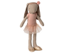 The well known Maileg bunny dressed up as a ballet dancer. It wears a rose colored suit, tulle skirt and ballet shoes.
