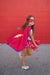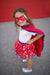 Save the day and be your own superhero with this amazing cape-tutu set with a matching mask. The lighting bright red tutu featuring a silver star pattern and is trimmed in blue sequins. The matching cape is bound in blue shine and features a matching lighting bolt to the soft, easy-on-and-off, superhero mask.