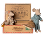 A classic Maileg item. Mum and Dad mice are wearing their beautiful nightwear and eye masks. The cigar box is a perfect bed for a good night’s sleep and sweet dreams.