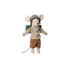 This mouse is well-prepared for a hiking trip in the wild nature. He is dressed for days of walking and brings his sleeping bag for nights under the stars. He has magnets in his hands. Add more accessories from the hiker collection for more play.