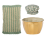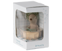 Rub a Dub Dub there is a mouse in the tub. Ms. Mouse gets squeaky clean in the tub, but her ears stay dry with her shower cap. She uses a cute gold metal cup for her tub. Every mouse needs a spa day!