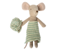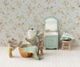 Like everyone else, this mouse loves to spend hours in the warm water in her lovely bathtub. This playset contains a golden metal bathtub, a big sister mouse, a shower cap, and a towel.